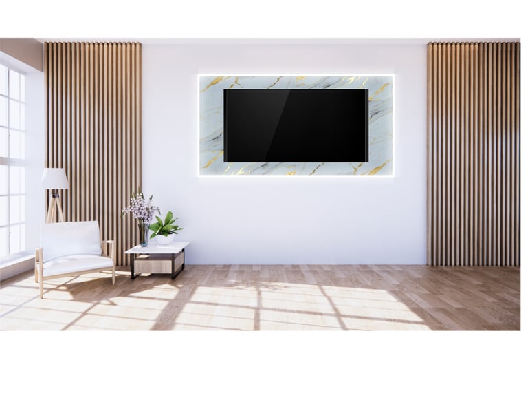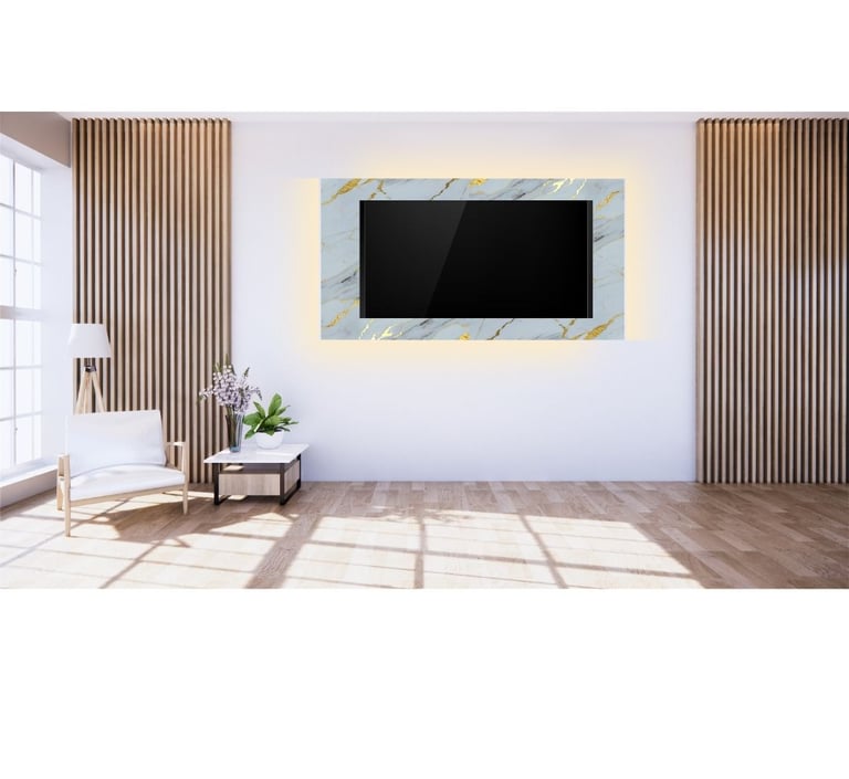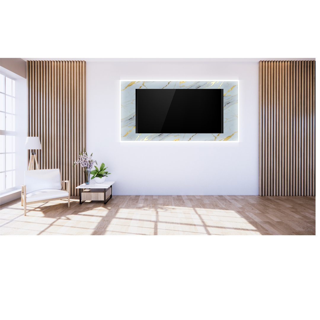 Sus bordes con perfil de aluminio con luz LED integrada crean una atmósfera suave y acogedora. Con un diseño elegante y materiales de alta calidad, es perfecto para colgar tu televisor y darle un toque de estilo a tu hogar. ¡Fácil de instalar!